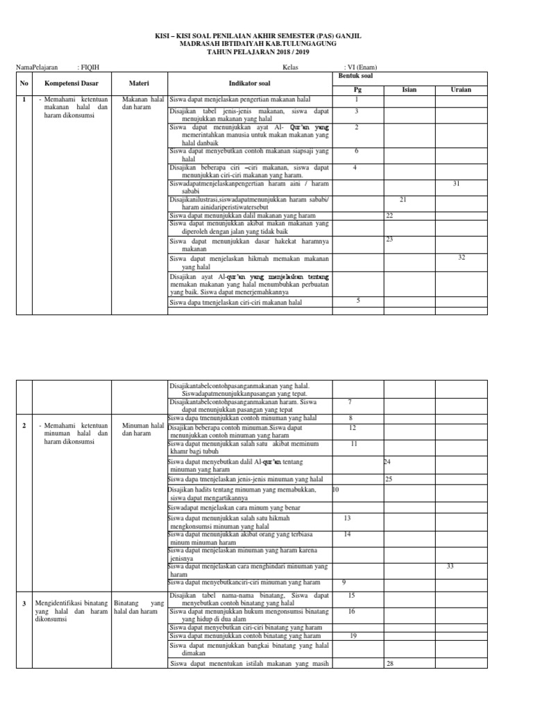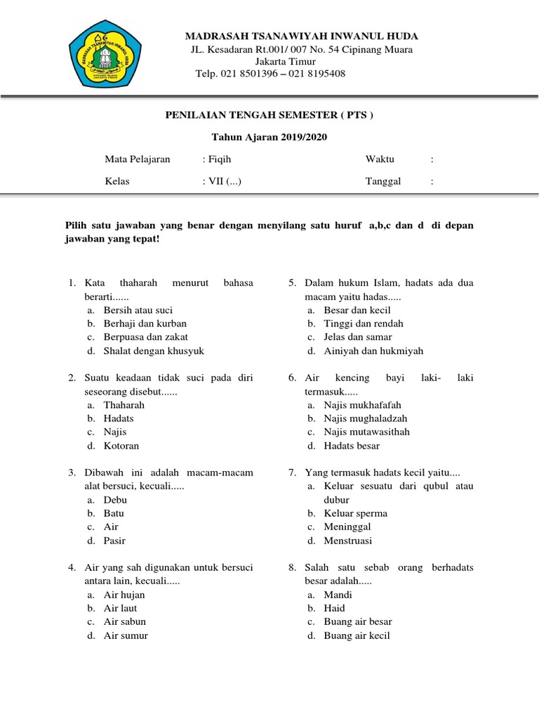 Contoh Soal Fiqih Kelas Vii Semester Ganjil Bab Akhir Contoh Soal