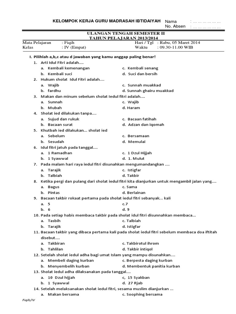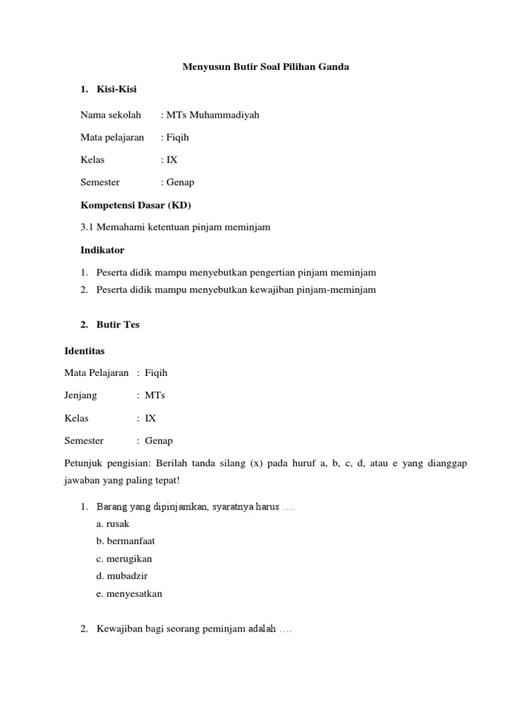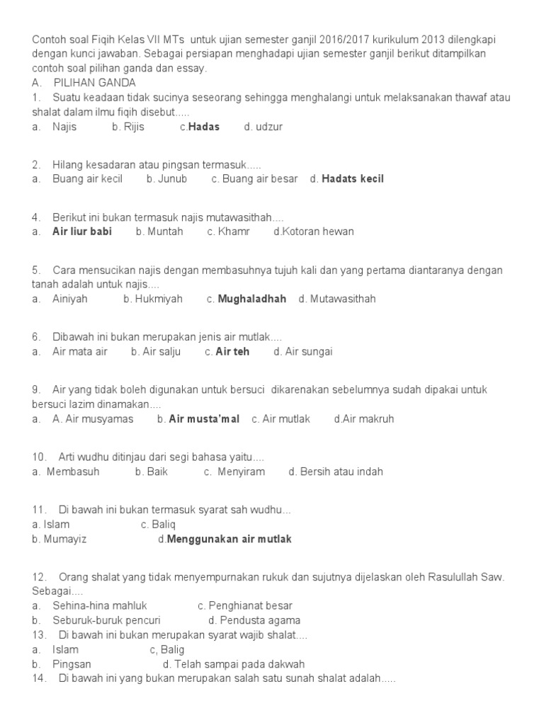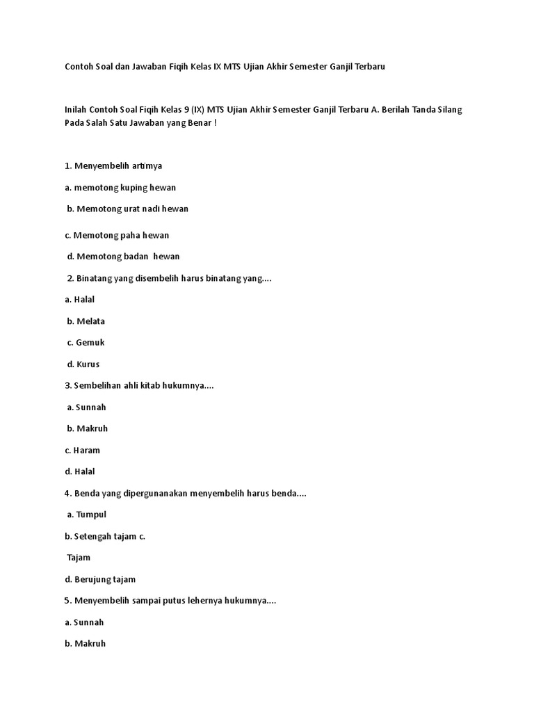 Contoh Soal Dan Jawaban Fiqih Kelas Ix Mts Ujian Akhir Semester Ganjil Terbaru Bacaan Madani Bacaan Islami Dan Bacaan Masyarakat Madani